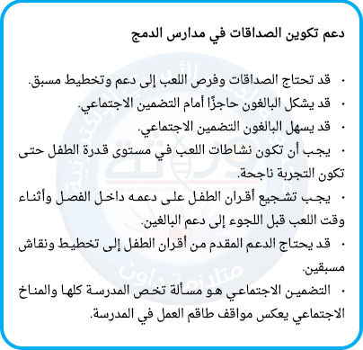 يجب على الآباء والمدرسين أن يخلقوا فرصًا لتمكين هؤلاء المراهقين من إيجاد مدى واسع ومتنوع من الصداقات، وتشير دراسات المؤلفين إلى أن وضعهم في المدارس يؤثر فعلًا على صداقاتهم، فالمراهقون الذين يرتادون المدارس الخاصة يميلون إلى تكوين صداقات أكثر مع ذوي الاحتياجات الخاصة ويتواصلون بشكل أقل مع أقرانهم الأصحاء بينما يحدث العكس في حالة المراهقين الذين يتم تضمينهم في المدارس العامة.