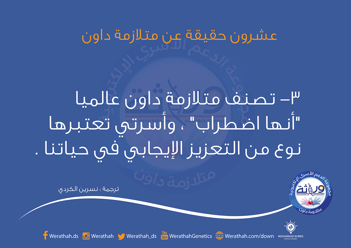 3-تصنف متلازمة داون عالميًا أنها اضطراب وأسرتي تعتبرها نوع من التعزيز الإيجابي في حياتنا.