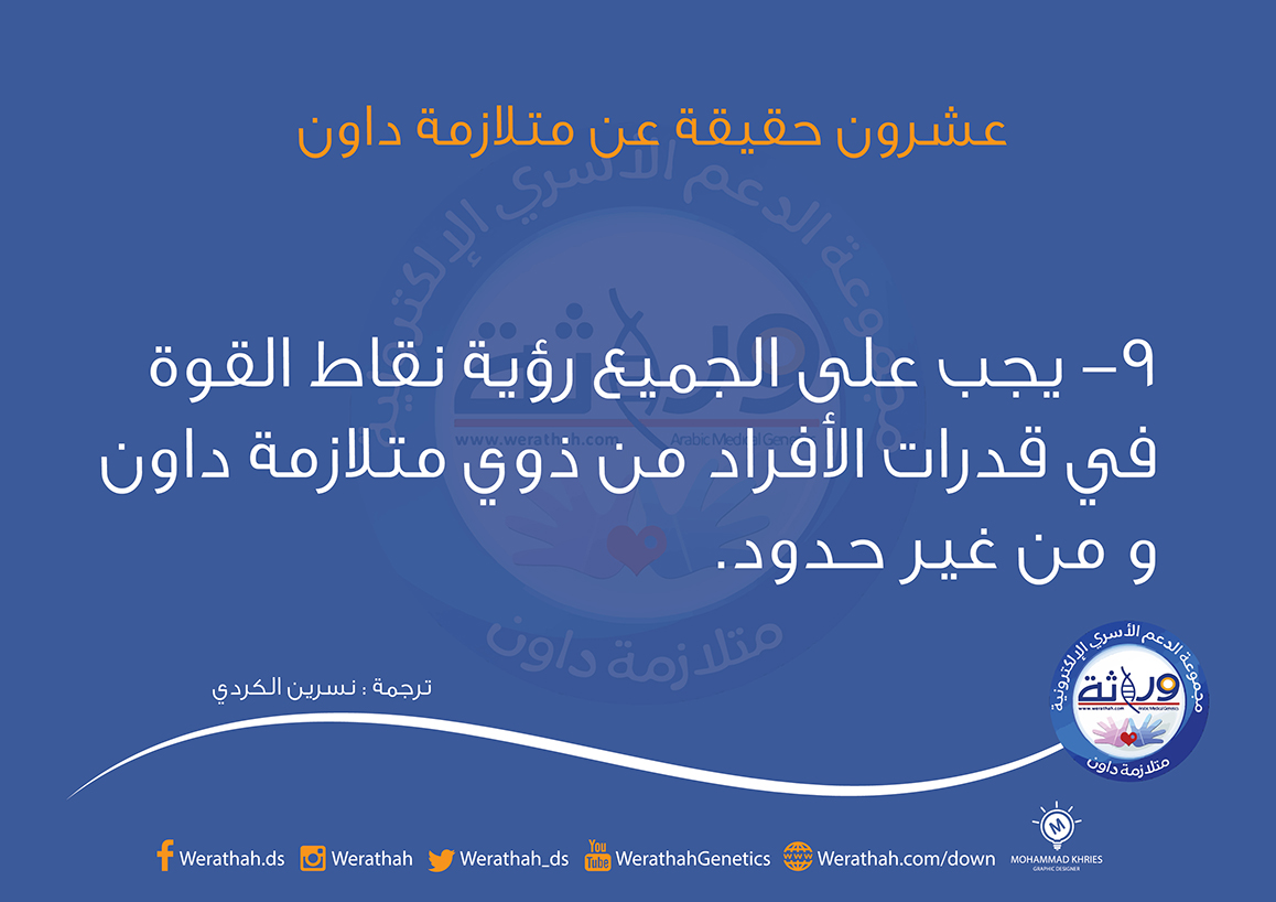 9-يجب على الجميع رؤية نقاط القوة في قدرات الأفراد من ذوي متلازمة داون ومن غير حدود.