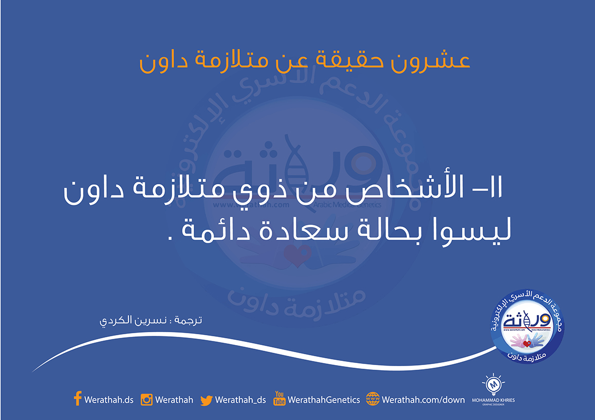 11-الأشخاص من ذوي متلازمة داون ليسوا بحالة سعادة دائمة.