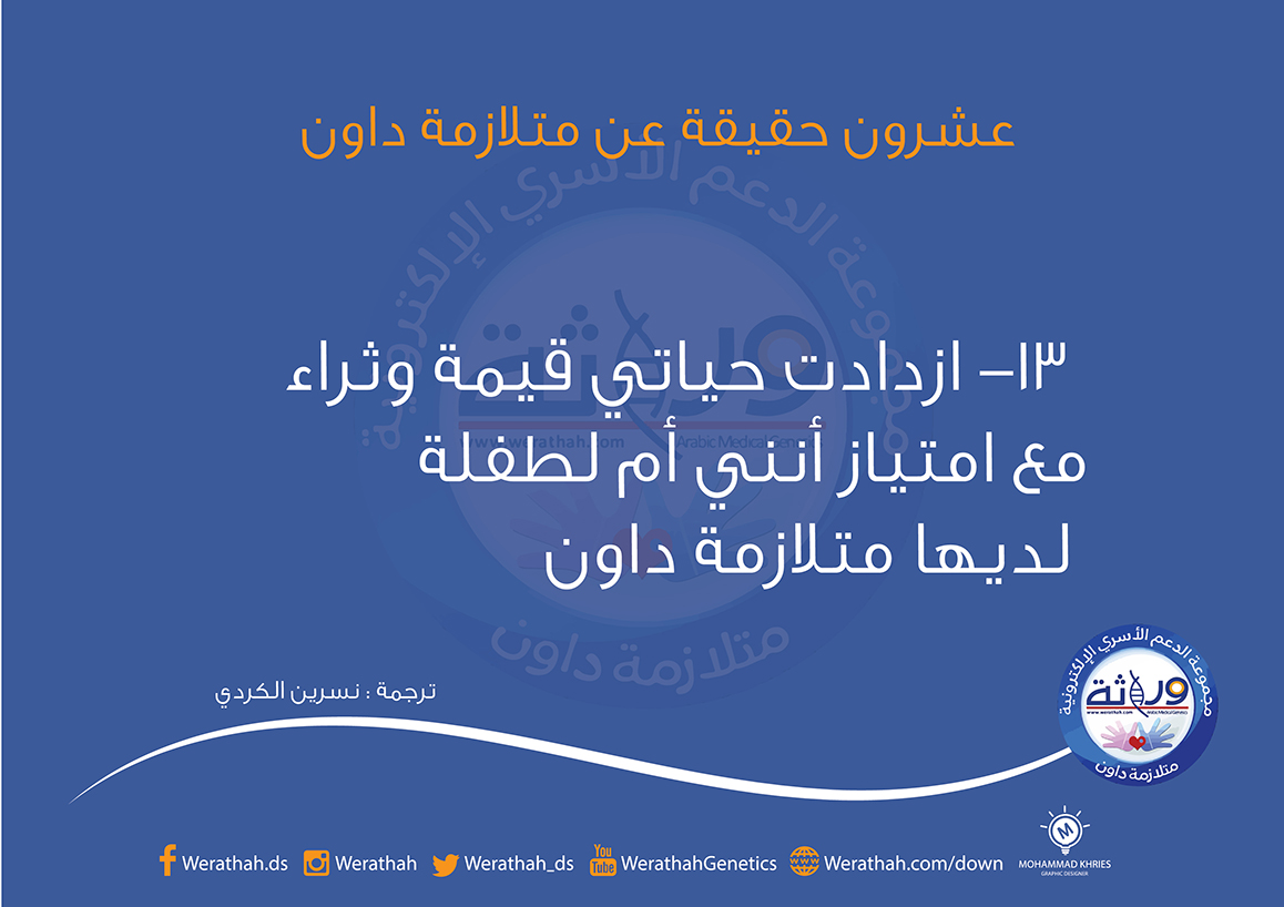 13- ازدادت حياتي قيمة وثراء مع امتياز أنني أم لطفلة لديها متلازمة داون.