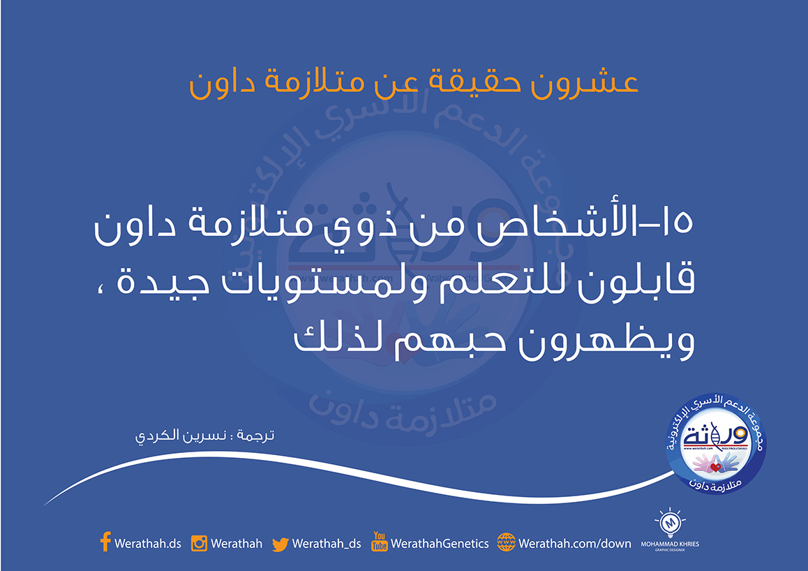 15-الأشخاص من ذوي متلازمة داون قابلون للتعلم ولمستويات جيدة، ويظهرون حبهم لذلك.