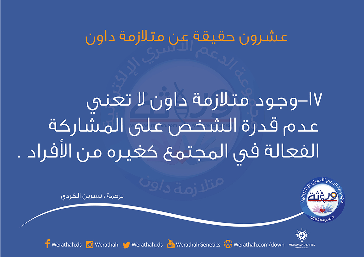 17-وجود متلازمة داون لا تعني عدم قدرة الشخص على المشاركة الفعالة في المجتمع كغيره من الأفراد.