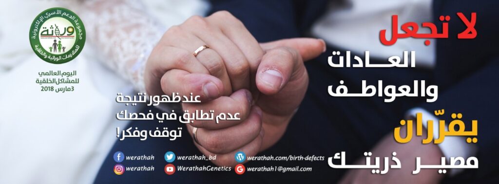 نسعى للحد من لإعاقات الخلقية عبر التوعية بحمض الفوليل،واهمية الفحص قبل الزواج و توفير دليل شامل للمتلازمات الوراثية